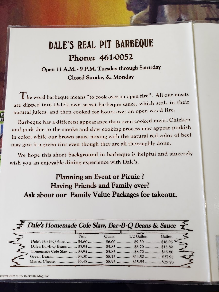 Customers rave about the pulled pork and the expertly smoked meats, complemented by house-made sauces that balance tang and sweetness. Dale's BBQ South also boasts combo specials that provide great value and variety, making it the perfect spot for any barbecue enthusiast. With a recent remodel that enhances its inviting ambiance, along with commendable team service, it promises an enjoyable dining experience for all.
